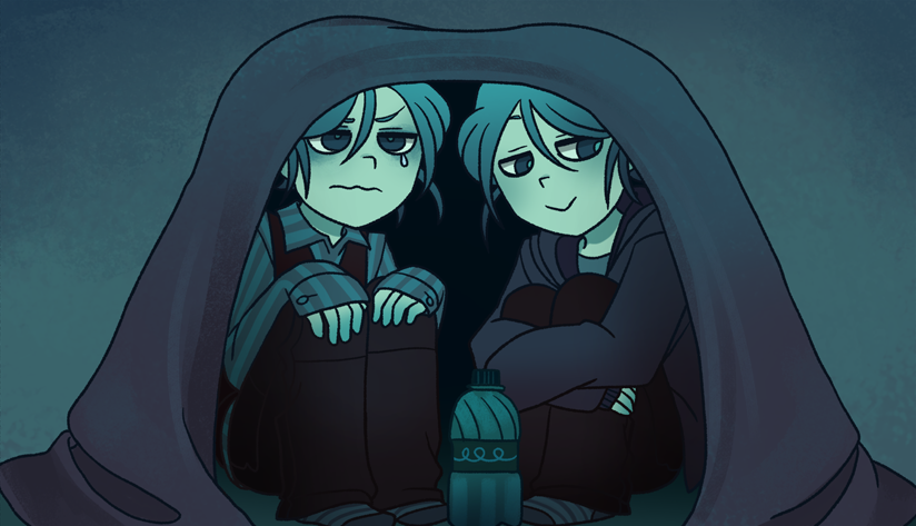La direction artistique, plus sobre que dans les précédentes créations de Nemlei, est un choix parfaitement cohérent avec l’histoire proposée. Les teintes de bleu et de vert sont d’un superbe effet, et nous plongent directement dans l’ambiance mentale de la dépression. Peut-être pourrions-nous regretter un manque d’illustrations au fil du récit, mais les rares proposées sont très réussies, et chargées de sens.