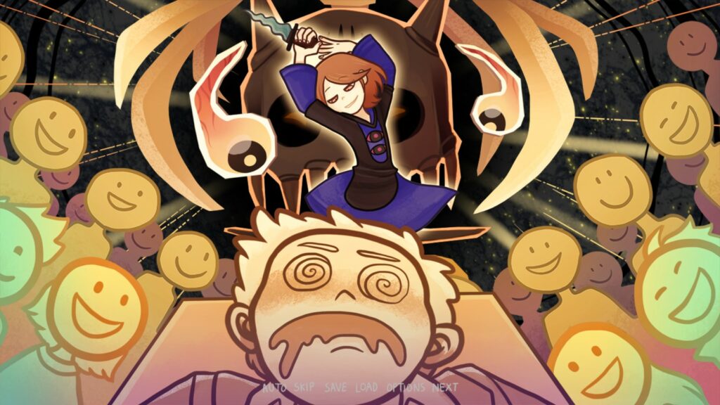 Un détail reste intéressant à noter : le bébé démon que l’on aperçoit dans un des endings ressemble beaucoup au Seigneur Inconnu de The Coffin of Andy and Leyley. Ce n’est pas une première, car il y avait déjà des similitudes avec le dieu démon de Divilethion. Nemlei semble apprécier la réutilisation de certaines identités graphiques d’une œuvre à l’autre, installant une véritable cohérence artistique au sein de son univers.