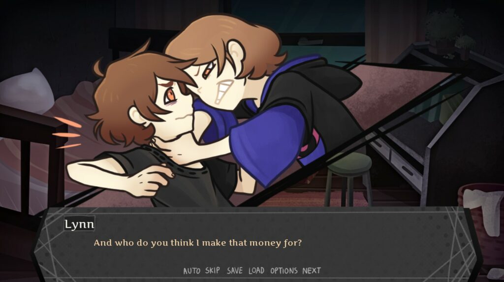L’histoire se révèle malheureusement très courte : à peine quarante minutes pour terminer les trois routes principales. Le jeu aborde avant tout le sujet de l’amitié et de la confiance, et ce sont les choix effectués autour de ces thématiques qui déterminent l’accès à la good ou à la bad ending. Mais comme les évènements s’enchaînent trop rapidement, en l’espace d’une nuit, cette amitié naissante entre Slough et la jeune fille peine à être palpable. Il est difficile de s’attacher émotionnellement à eux.