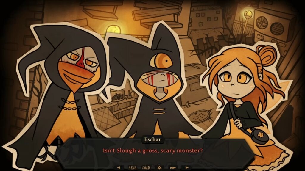 J’ai dévoré cette courte histoire, ne durant qu’une seule petite heure en comptant les deux routes à explorer. Avec toute l’expérience accumulée sur Jack-In-A-Castle, je trouve l’écriture de Nemlei bien plus posée et pertinente que son ainé, rendant le récit très lisible et agréable à suivre. On retrouve la même ambiance mi-joyeuse mi-macabre, où la frontière entre le bien et le mal est questionnée par les choix que doit faire Lynn pour protéger son village. Ce dernier est un garçon perché et obnubilé par son culte, au détriment du lien fort qu’il est censé entretenir avec son jeune frère.