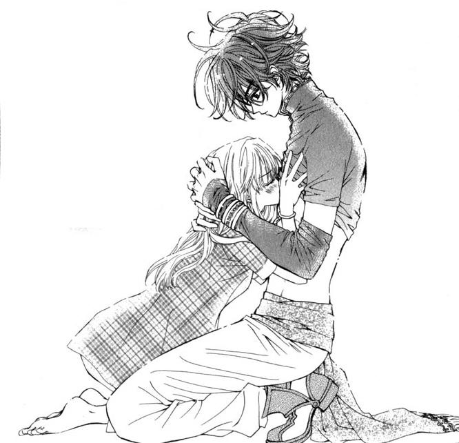 Ce petit garçon très mignon est la substance d’originalité qui saupoudre le récit, car victime d’une malédiction : lorsque celui-ci se retrouve dans le noir, il devient un jeune homme de 17 ans ! Seul un baiser pourra le faire revenir à son état d’origine… On imagine assez facilement quels quiproquos et péripéties délirantes il en découle. En fermant le dernier tome, j’ai trouvé cette histoire d’amour entre une lycéenne et cet enfant d’une grande tendresse, une relation plaisante à voir évoluer.