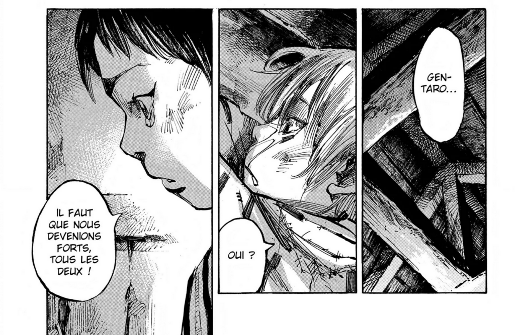 La tension monte en puissance jusqu’au climax dans le troisième volume, où une scène en particulier marque au fer rouge la perte de l’innocence pour les frères Yukimura. Cette introduction m’avait profondément frappé lorsque je l’ai lue en 2007. Et même en la relisant cette année, en 2025, j’angoissais en contemplant passivement le malheur de ces enfants.